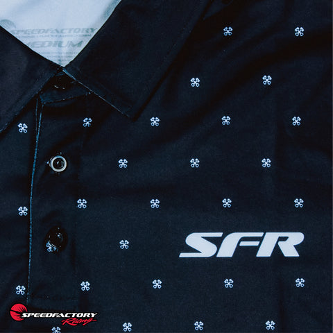 Just look at that pattern! The New SFR " Piston and Rod" premium polo!  Whether you are out on the golf course with the boys or just looking to keep is casual at the backyard BBQ, this unique polo is sure to turn heads. Lightweight with a soft-poly fabric mix. Engineered to keep you dry, cool, and fresh looking.