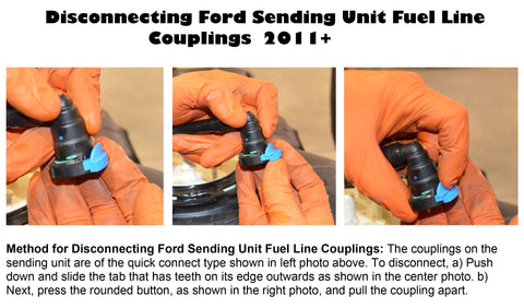 Note for installation: Please refer to the product images on this page for the method of disconnecting the Ford Sending Unit Fuel Line Coupling.
