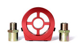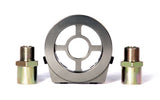 The filter block adapter mounts between the engine block and oil filter. Two universal filter adapters are provided.