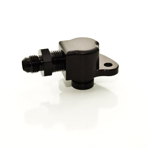 Each fitting is machined from 6061 aluminum and receives a T6 heat treatment and black anodized finish. The fitting should be used with a new OEM O-ring (Honda/Acura part number 91370-SV4-000).
